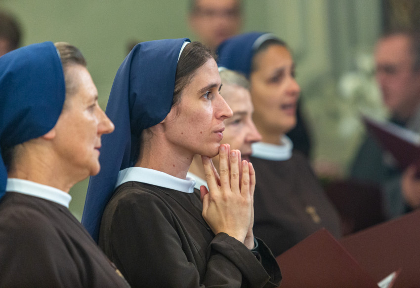 A Szent Ferenc Kisnővérei közössége is aktívan vett részt a szentmisén, hiszen a kórust is ők alkották. Antal Alexa Krisztina nővér Szombathelyen született, de Kőszeget tartja szülővárosának, ahol felnőtt. Egy nővére és egy öccse van, szülei, testvérei nem vallásgyakorlók. Élete és hite fejlődése szempontjából meghatározó volt a domonkos nővérek iskolájában eltöltött nyolc általános iskolai év. Egyetemre az ELTE Pedagógiai és Pszichológiai Karára járt. A Szent Ferenc Kisnővérei közösségével az Egerszalóki Ifjúsági Találkozón ismerkedett meg. Imádságos évek után két évvel később adta be jelentkezését a közösségbe, ahová 2014 nyarán nyert felvételt. Gyerekkori „missziója” az, hogy megmutassa, Istennel lenni jó, ő az Élet forrása. Vágya mindenkinek átadni, hogy Isten a szeretet. Ehhez a belső küldetéshez kapta segítségül a szerzetesi nevével együtt a színeváltozás misztériumát (Jézus Színeváltozásáról nevezett Krisztina nővér).