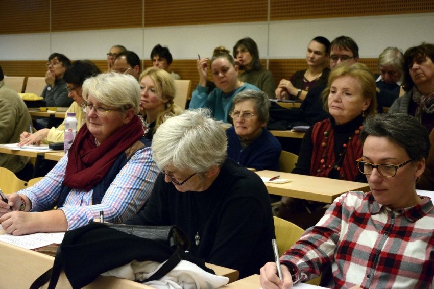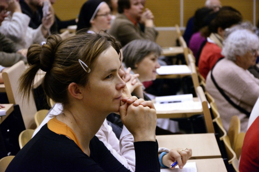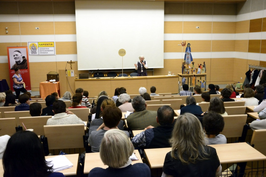 Emmanuelle Bonhomme, a Notre-Dame de Vie intézet munkatársa vetített képes előadással színesítve beszélt az intézetben folyó kateketikai munkáról, és annak lelki-szellemi alapjairól.