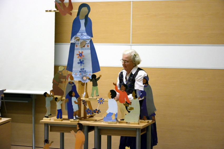 A „Jöjj, kövess engem”-pedagógia arra épít, hogy Isten úgy akarta, hogy láthatóvá váljék a láthatatlan, és erre valahogyan válaszolnunk kell. A válaszadásra való készséget úgy tanulhatjuk meg, ha már gyermekkorban megpróbálunk Istennel együtt lenni – mondta az előadó. Így válik az Istenről való tudás alapjává az istenkapcsolatra való nevelés.