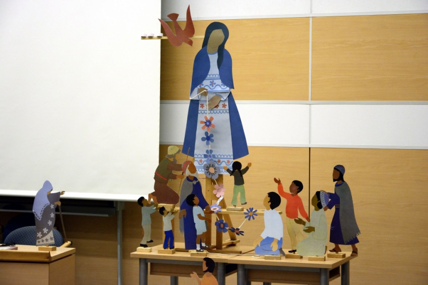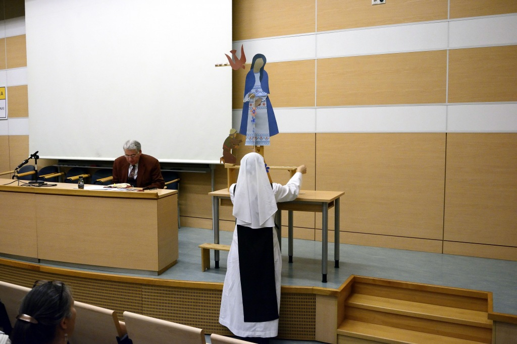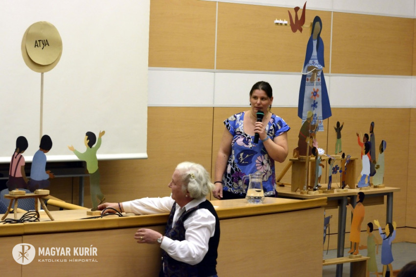 Az előadások után Csillag Éva és munkatársa, Gakovic Blanka a Szent Gellért-óvodában zajló, a fent említett kármelita lelkiségen alapuló katekézis gyakorlatát szemléltették. Azokat a felnőtteket és gyermekeket ábrázoló sziluetteket és vallásos szimbólumokat is bemutatták, amelyeket a hittanórákon használnak, és amelyek segítségével imádságos, a csendben történő megértésre inspiráló, elmélyült, családias légkört teremtettek a Sapientia-főiskolán zajló program idejére is. A kateketika műhely alkalmával elmondott imádságok gitárkísérettel hangzottak el.