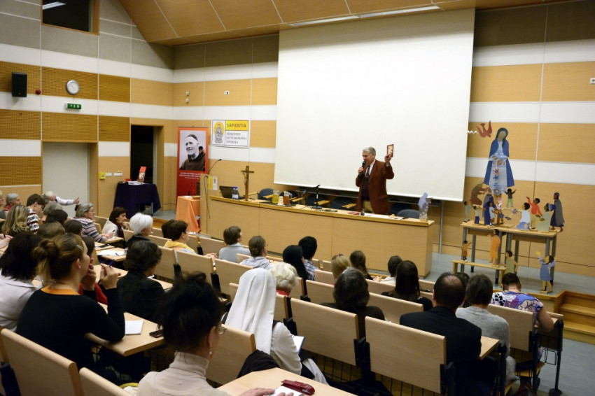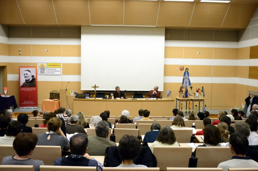 A Sapientia-főiskola kateketikai műhelye keretében Bakos Rafael OCD ismertette Boldog Marie-Eugene életének fordulópontjait, lelki útjának állomásait. A szerzetes könyvet írt a boldoggá avatott kármelita szellemiségéről A Lélektől megragadottá válni címmel, melyet a magyarszéki kármeliták adtak ki. Versegi Beáta Mária, a Nyolc Boldogság Közösség tagja, a Sapientia-főiskola tanára, az Eucharisztikus Élet Mozgalom elnöke a már említett francia lelkiségi pedagógia alapján havonta tart szentségimádást gyermekek számára Budapesten az Örökimádás-templomban. Előadásában az Istennel való bensőséges kapcsolatra előkészítő pedagógia teológiai-antropológiai kiindulópontjait vázolta fel.