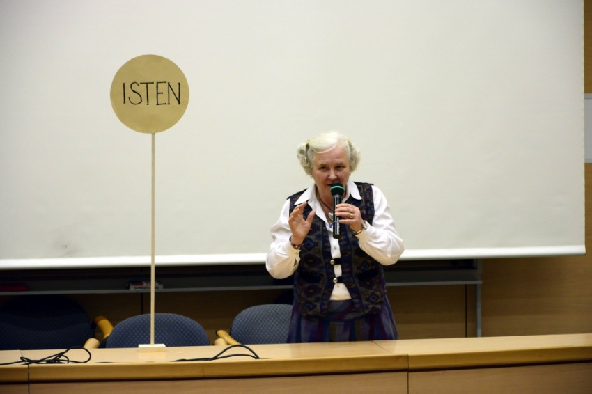 A szó, a gesztusok, a csend világában láthatóvá válnak az értelem számára feloldhatatlan feszültségben álló dolgok is. Így megtanuljuk, hogy az emberi életben le kell mondanunk a „minden megmagyarázható” elvéről – tette hozzá Versegi Beáta, Jézus és a házasságtörő asszony találkozásának történetét hozva fel példaként, amelyben nem tudhatjuk meg, hogy végső soron mit rajzolt, írt a porba a Megváltó, s ezt a megfejtetlenséget el kell fogadnunk.