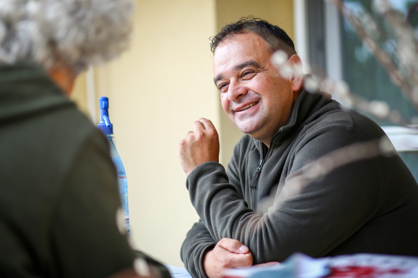 Tamásékhoz megyünk tovább, és nagyjából mintha a Családi körbe csöppennénk. A vacsora végeztével, a nappaliban letelepedve a gyerekek még körbejárnak, és újra meg újra sütivel kínálgatnak bennünket, mi pedig Tamással először a teraszon, aztán a levesestál fölött, végül a kanapén üldögélve a kántorságról, az egyházi szolgálat iránti elkötelezettségről beszélgetünk, amelyet ő – noha sok-sok szabadidejét leköti – úgy tűnik, a legtermészetesebbnek, élete szerves részének tart.