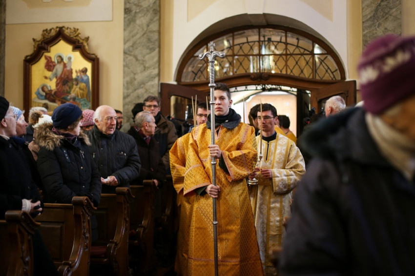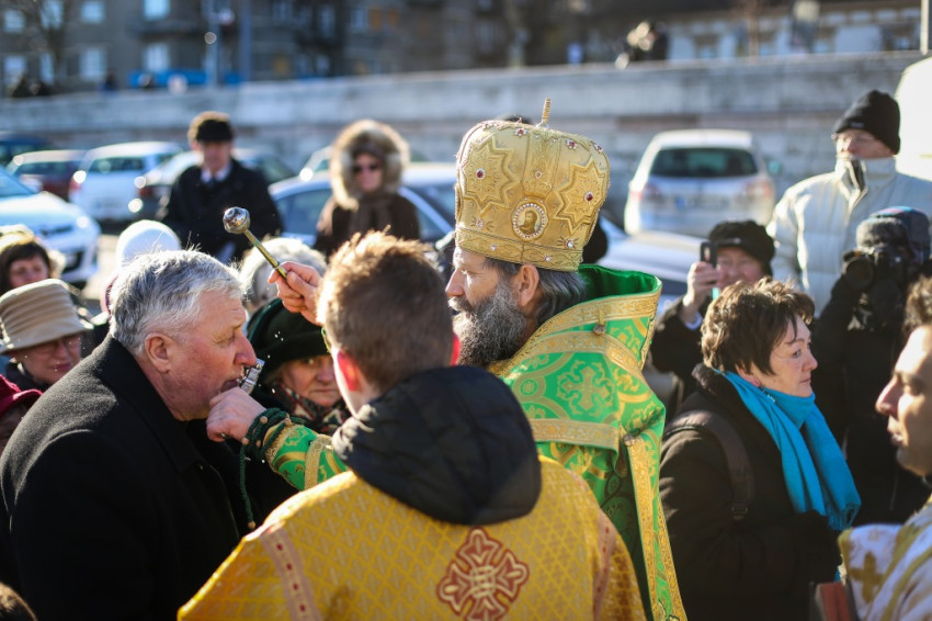 A Szent Flórián görögkatolikus templomban megtartott Szent Liturgia keretében Kocsis Fülöp az aznapra szóló tropár (liturgikus főének, himnusz) kezdősorát idézte beszédében: „A Jordánban való kereszteltetésedkor, Urunk, kijelentetett nekünk a Szentháromság imádtatása”. Egész életünk összefoglalása ez – mondta az érsek-metropolita –, s ezért érthető, hogy görögkatolikus egyházunkban a vízkereszt nagyobb ünnep, mint karácsony.