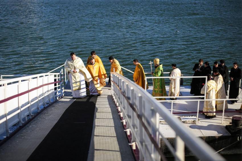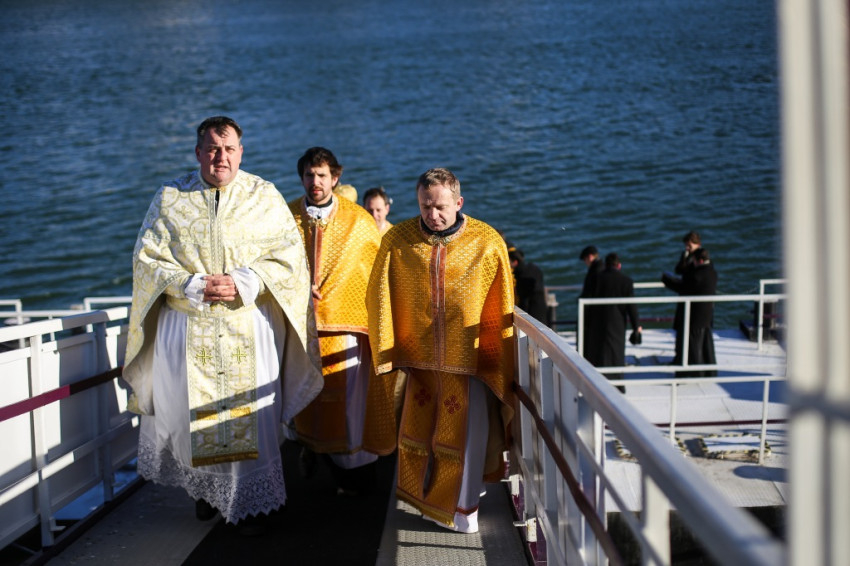 A szenteléshez kapcsolódó ó- és újszövetségi szentírási részek felolvasása után Kocsis Fülöp érsek-metropolita a stég lépcsőjéről szentelte meg a Duna vizét: háromágú gyertyát mártott az erős szélben fodrozódó vízbe, kezével keresztet rajzolt a folyóba, a vízre lehelve kérte a Szentlélek eljövetelét, s végül egy fémkeresztet merített a Dunába.