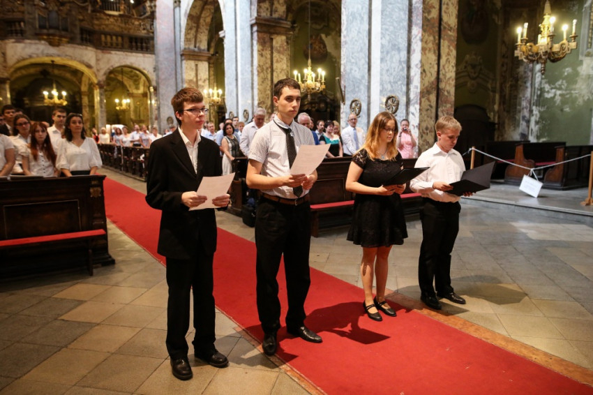 A prédikáció után a négyéves tanulmányok eredményes és ünnepélyes lezárásaként négy végzős – Angyal Márton, Balog Szabolcs, Balogh István, Ördög Lea – elmondta a kántori esküt, mely után Beer Miklós megáldotta őket, hangsúlyozva: szolgálatuk legyen otthona a megfáradtaknak, vigasztalója a szomorúaknak, egyesítője a rájuk bízott népnek, hogy az Isten hajlékában mindig a mennyei Atya gyermekeinek érezzék magukat.