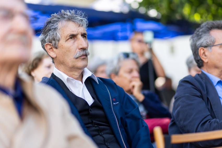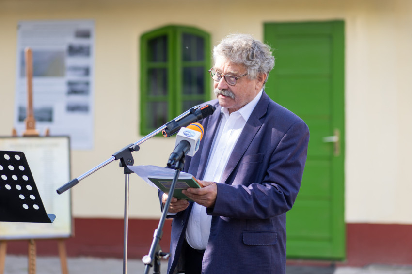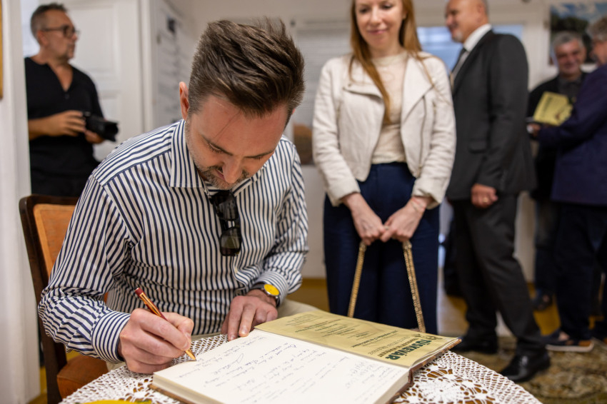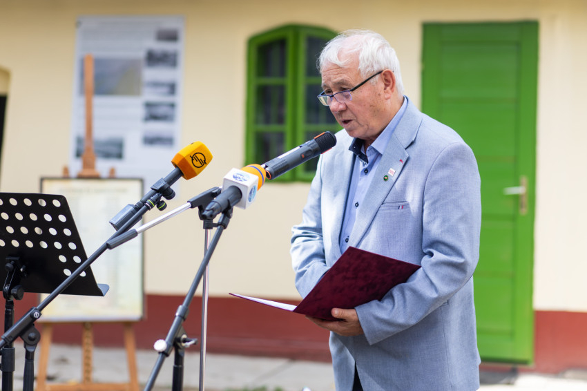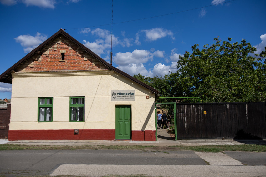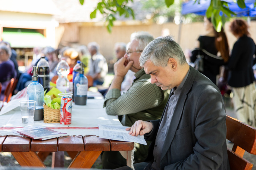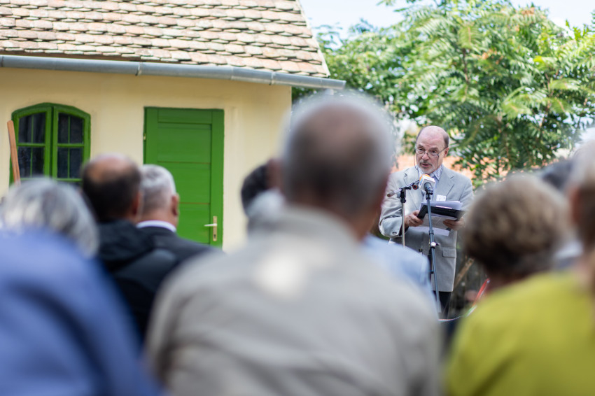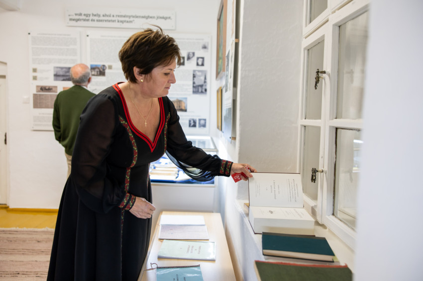 Szépen rendbe hozott, sárgára festett, stílusos egykori parasztház ad otthont a ma is népszerű író emlékhelyének, aki az idén nyolcvanéves Új Embernek is állandó munkatársa volt. A tágas udvaron népes vendégsereg gyülekezett már a megnyitó előtt fél órával a délutáni napsütésben. A jellegzetes utcafrontos épület hosszan nyúlik hátra, benne a lakószoba, ahol most a Természet és művészet című kiállítás látható, és egy hombár, ami az alföldi gabonatermesztés és -tárolás ritka értékes épen maradt emléke.