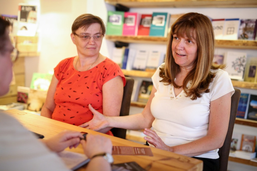 Bobok Beatrix: Jogi diplomával rendelkezem, de mediátor végzettségem is van. Öt fiam van, sokáig otthon voltam velük. A munka világába visszatérni nem volt egyszerű, de régi vágyam volt, hogy létrehozzak egy kávéházat, ahol a finom italok és sütemények mellett keresztény szellemiségű könyveket árusítanánk, melyeket a vendégeink nyugodtan olvasgathatnak is, nem kötelező megvásárolniuk. Márti régi barátnőm, több gyerekünk is egy osztályba járt. Hozzám hasonló dilemmákkal küszködött, sokat beszélgettünk, végül eldöntöttük, hogy megnyitjuk a könyves kávéházunkat.