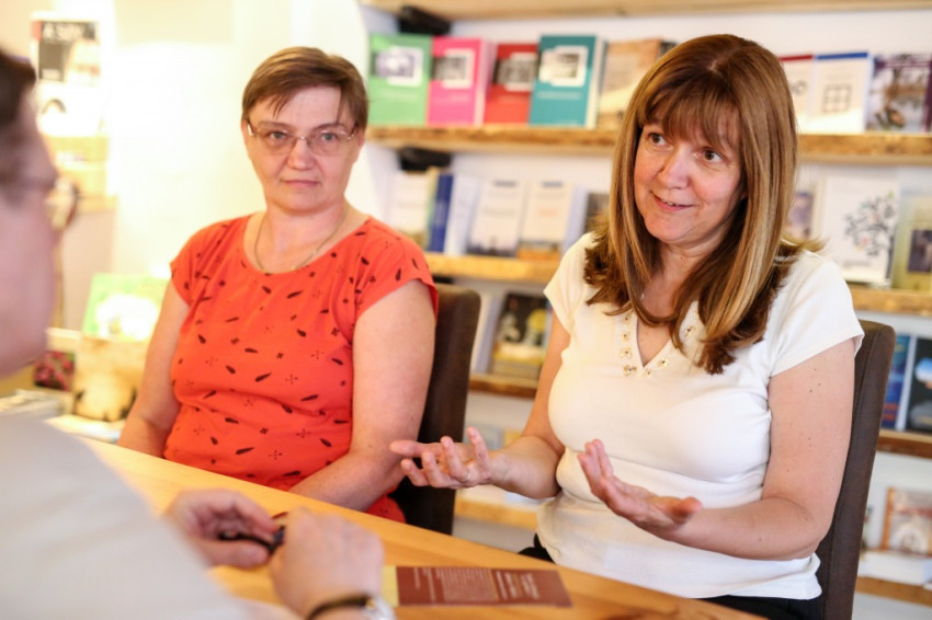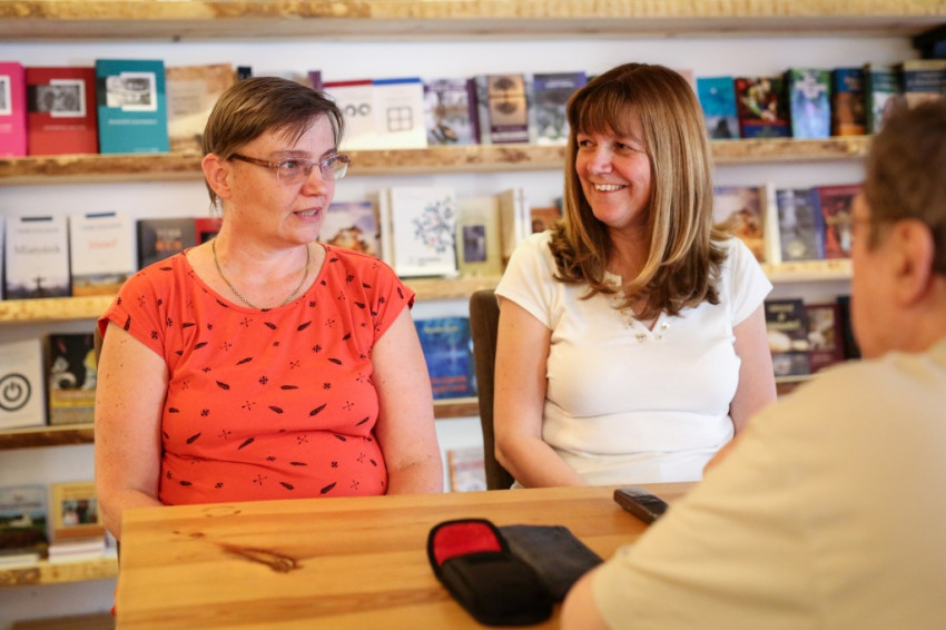 Csány Márta: Eredetileg zenetanár vagyok, hat gyermekem van, két lányom és négy fiam, huszonhat évet voltam otthon. Tanítani ennyi év után nem akartam visszamenni. Évek óta kántorkodom, de szerettem volna valami mást is kipróbálni. Beával sokat beszélgettünk, merre tovább, aztán mikor jött ez a lehetőség, örömmel vágtunk bele.