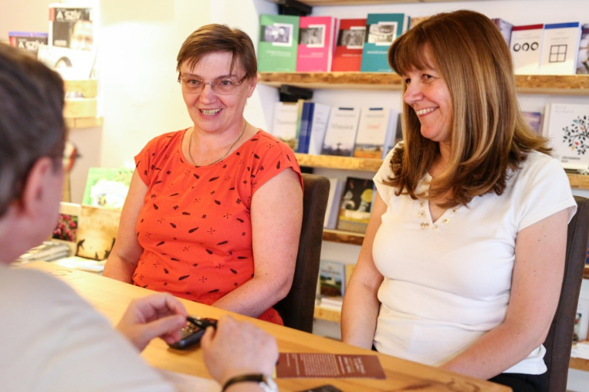 Cs.M.: Nagyon fontosnak tartjuk ezeket. Egy könyvesbolt akár személytelen is lehet, de mi rengeteg könyvbemutatót, előadást szerveztünk. Beával megegyeztünk abban, hogy nem fogunk divatos és hatékonynak tartott reklámokkal foglalkozni. Abban reménykedtünk, hogy ha valaki bejön ide, ha részt vesz a programokon, akkor jól érzi magát, és ezt hirdetni fogja másoknak is, elviszi hírünket, így egyre többen szereznek tudomást rólunk, egyre többen jönnek el hozzánk.