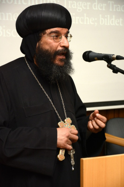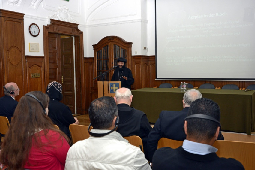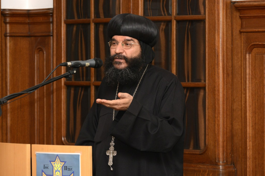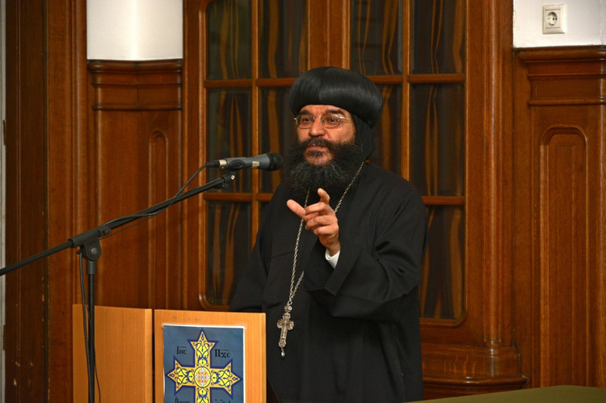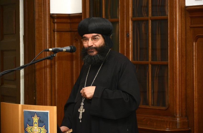 Az egyházi elöljáró előadásában bemutatta a kopt egyház történetét. A kopt szó eredete a fáraók idejére vezethető vissza, azt jelenti: ’Isten háza’. A hagyomány szerint a fáraókat is így nevezték, ezért a koptok a fáraók leszármazottjainak tartják magukat. A Krisztus utáni első században Szent Márk hatására Egyiptom keresztény lett, itt alapította meg a világ első keresztény hittudományi akadémiáját is. Egyiptom keresztény ország volt egészen a 7. századig, az arab hódításig. A 10. századra a kopt keresztények aránya a népesség ötven százalékára csökkent. Ma Egyiptom lakosságának körülbelül tizenöt százaléka, vagyis 14 millió ember keresztény. Szerte a világban pedig további egymillió kopt él.