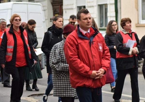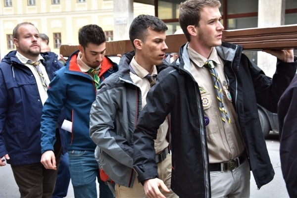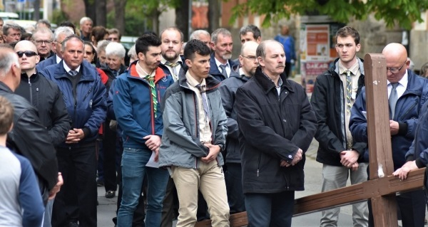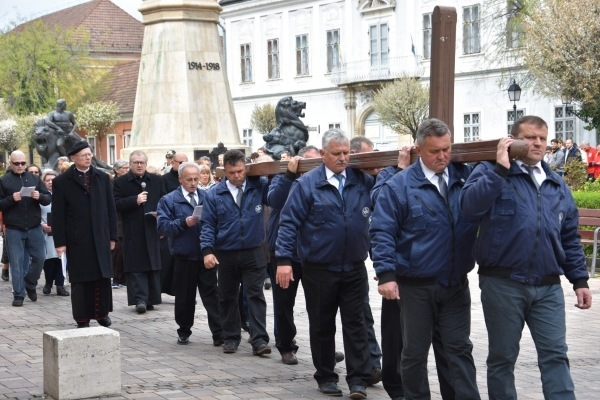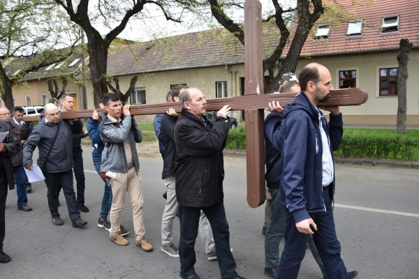 Krisztus keresztjét – amelyet felváltva vittek a férfiak – hosszú menet kísérte. Jelen voltak a Váci Férfiszövetség és a rimóczi Szent József Szövetség tagjai, több egyházmegyés pap és diakónus, cserkészek, váci és környékbeli hívők egyaránt. Mivel a Váci Egyházmegyei Karitász lelkinapját ezen a napon tartották a Fehérek templomában, az egyházmegye területéről érkezett karitászcsoportok képviselői – közel százan – is részt vettek az eseményen.