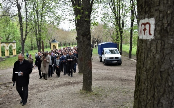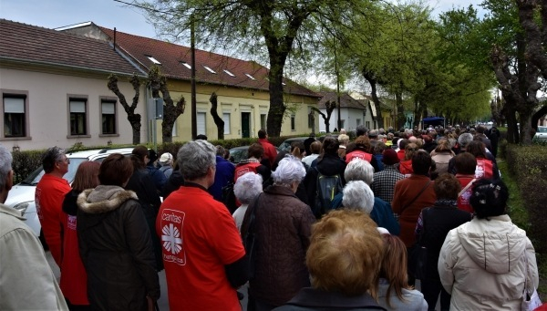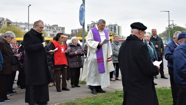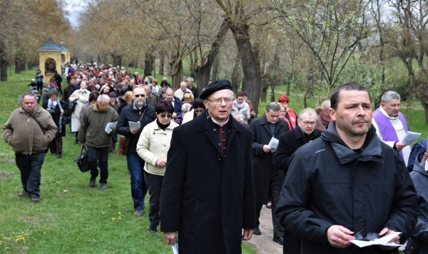 A keresztút a kegytemplom kertjében ért véget, a felállított kereszt előtt Varga Lajos váci segédpüspök hálát adott Isten Fiáért, Krisztus értünk hozott áldozatáért, kereszthaláláért és dicsőséges feltámadásáért. Majd azért imádkozott, hogy a keresztút által minden résztvevő közelebb kerüljön az Úrhoz. A szertartás a püspök áldásával ért véget.