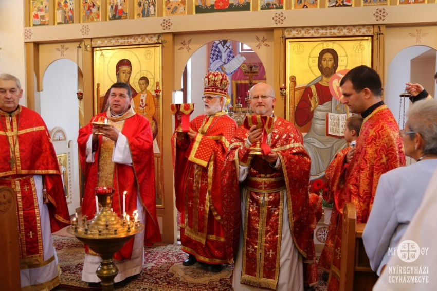 Obbágy László parókus azért idézte fel a templom egyik táblaképén is látható ószövetségi jelenetet, mert ilyen támogató szeretetet érez és élvezhet már tizenöt éve itt, a huszadik születésnapját ünneplő Nyíregyháza-kertvárosi Görögkatolikus Egyházközségben, és hálás szívvel köszönte meg a templom ünnepi Liturgiáján a híveknek a sok-sok munkát, odafigyelést, a ráfordított energiát és az imádságos alkalmakat. „Mindenért Istené a dicsőség – mondta –, de az emberek munkáját értékelni örömteli kötelesség.” Az ikonosztáz keresztjének kerámiaplakett változatát akasztotta mindazoknak a nyakába, akiknek érdeme van abban, ahogyan ez a közösség működik.