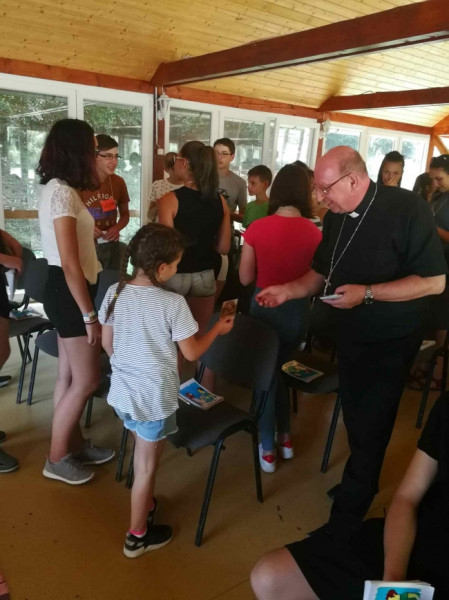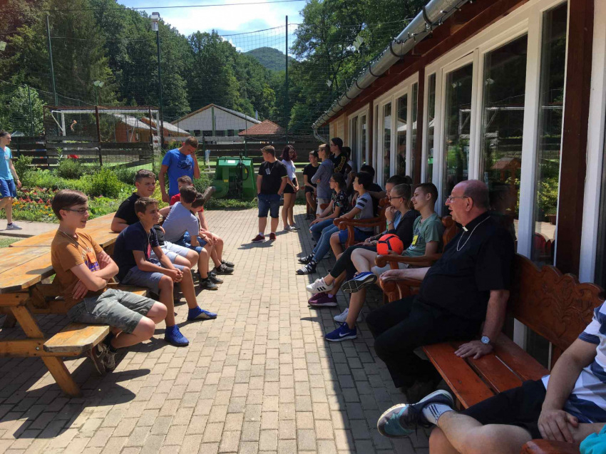 A szentmisét és a mosollyal, jókedéllyel megtöltött közös ebédet követően a püspök a tábor központi témájáról, a szeretetnyelvekről beszélgetett a fiatalokkal.