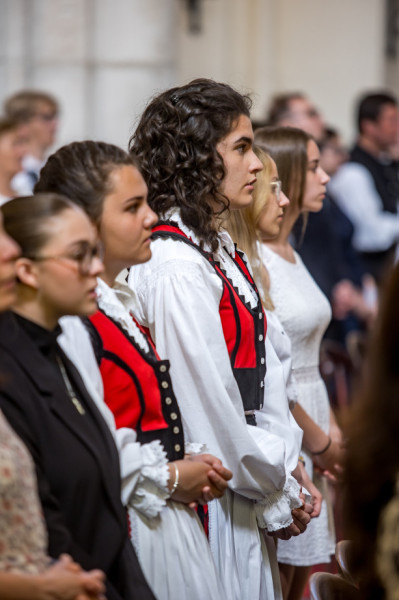 3. A mai szentmisén a bérmálás szentségét szolgáltatjuk ki. Elterjedt manapság az a felfogás, hogy itt elsősorban a bérmálkozók nagykorú döntéséről van szó. Ez azonban nem felel meg a szentség lényegének. Igaz, hogy latinul confirmatiónak nevezik ezt a szentséget, de nem azért, mert a gyerekkori ígéretet serdülő- vagy felnőttkorban megerősíti a hívő ember. Ha így volna, ez pusztán emberi döntés lenne, ami mindig hasznos, jó és szükséges, de nem csupán a bérmálás pillanatában, hanem napról-napra, akkor is, amikor elsőáldozók leszünk, amikor hittanra járunk, amikor gyakoroljuk katolikus vallásunkat, imádkozunk, igyekszünk hitünk szerint élni. Hanem