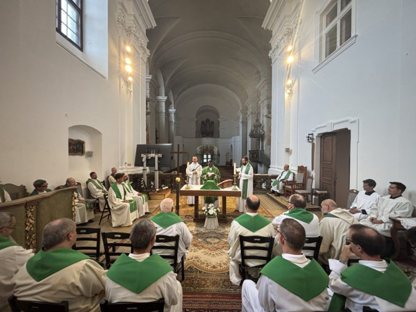 A tartományfőnök ezután a szentleckében hallott szentírási részről elmélkedett. „A zsidóknak írt levél a közösségi kitartás képét tárja elénk. A papi, a szerzetesi élet nem magányos küzdelem, hanem egy hosszútávfutás, amelyet egy csapat tagjaként teljesítünk. Konstitúciónk kimondja, hogy minket »a hit közösségébe az a szeretet gyűjtött egybe, amelyet az Atya ébresztett bennünk«. Szerzetesközösség vagyunk, amelynek tagjai egymást támogatva futják a pályát. Tudjuk, hogy ez nem mindig könnyű. De éppen ezért kell újra és újra tudatosítanunk: a közösség nem (csak) teher, hanem Isten ajándéka a kitartáshoz.”