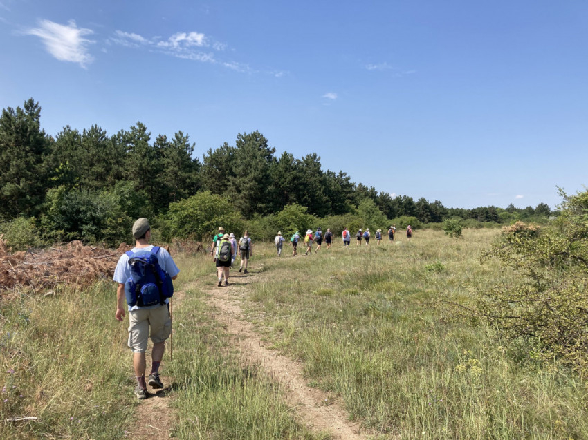 Budáról, a ciszterci Szent Imre-templomban közösen töltöttünk egy estét, másnap indultunk el. Útközben meglátogattuk az érdi Regina Mundi Apátságot, ahol ciszterci nővérek élnek. Élveztük a baracskaiak vendégszeretetét, a székesfehérvári ciszterci plébánia közössége is vendégül látott minket vacsorára. Ezek a találkozások felüdítettek bennünket az amúgy nem mindennapi igénybevételt jelentő utunk során. Az időjárás a tájhoz hasonlóan változatos volt: hol tűzött a nap és a meleggel küzdöttünk, hol esett az eső és fújt a szél; időnként kukoricaföldek mellett haladtunk, máskor hűs völgyben, sziklák közt vitt az utunk. Útközben több ciszterci szerzetes is csatlakozott hozzánk, hogy egy-egy szakaszon velünk gyalogoljon, imádkozzon.
