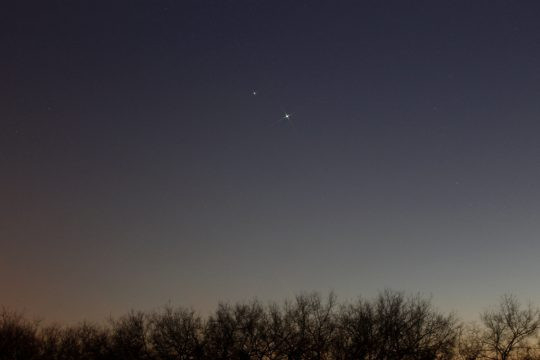 A Jupiter és a Szaturnusz idén már a tavaszi hajnalokon is egymáshoz közel látszottak.