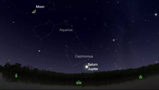 szabad szemmel nézve a Jupiter és a Szaturnusz szinte összeolvad,