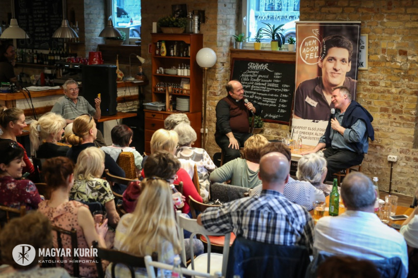 A kávézó alagsora, mint a hasonló rendezvényeken általában, ezúttal is teljesen megtelt. Tóni atya első kérdésére, milyen gyermek volt, milyen vágyai voltak, Böjte Csaba elmondta, papi jelmondata egy kívánság: az emberiség egy nagy családot alkosson, és egymásnak testvérei legyünk. Gyermekként arról ábrándozott, hogy a barátaival sátorvárost alapít, mert nagyszerű érzés lehet közösségben megélni az együvé tartozás örömét. Sokat kirándultak, bejárták az erdélyi hegyeket, letáboroztak a Szent Anna-tónál.