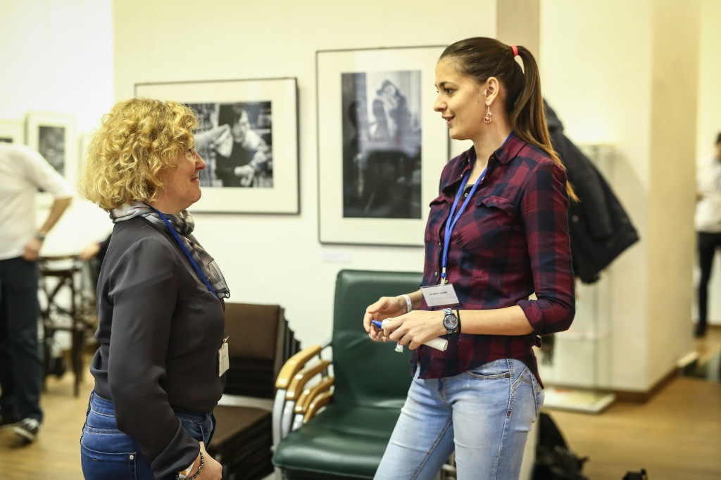 A Háló budapesti központja, az S4 hatalmas üvegablakai miatt az utca felől olyan, mint egy galéria. És részben, időről időre az is: most éppen híres muzsikusokról, például Solti Györgyről, Leonard Bernsteinről, Ferencsik Jánosról, Kocsis Zoltánról koncert vagy próba közben készült fotók vannak a falakon. A kollégára várva a gyülekezőket figyelem, időnként pedig ajtót nyitok a rengeteg kólával és Meggy Márkával érkező szervezőknek. Amikor pár perc múlva bemegyünk, először mindenáron bennünket is regisztrálni próbálnak, és majdnem kitűzőt is kapunk. Később többször is arra gondolok, talán jó lett volna elfogadni, hogy jobban „beolvadjunk”, résztvevőkké váljunk. A vendégek ugyanis, noha sokfelől érkeztek, egykettőre megtalálják egymással a hangot, kezdenek közösségként működni. És rossz ebből kimaradni, csupán szemlélőként jelen lenni.