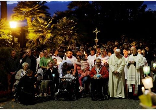 A hívek Angelo Comastri bíboros, a pápa vatikánvárosi helynöke vezetésével az Abesszíniai Szent István-templomnál gyűltek össze, ahonnan a lourdes-i Mária-barlang másolatáig fáklyás körmenetben vonultak fel.