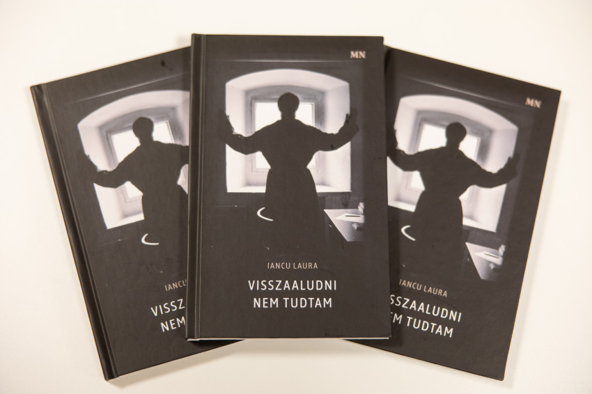 Az irodalmár megvilágította: ha Laura új könyvét kezünkbe fogjuk, a borítót látva rögtön felmerül bennünk a kérdés: Te vagy ezen a képen? Iancu Laura nevetve rázta a fejét: A jelen lévő Mohi Sándor kiváló filmrendező, fotóművész által készített kép látható a borítón, akinek sok nagyon szép moldvai filmet is köszönhetünk. A fotó filmforgatás közben készült. Egy szerzetest látunk, a cellájában. Kezét az ablakmélyedés felé tárja. Az íróasztalán ott van a papír és a toll, az írásnak, a gondolkodásnak szánt idő. Reggeli időt sejthetünk ide.