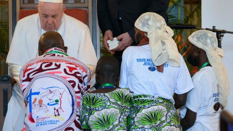 Butembo-Beni, Goma, Bunia, Bukavu és Uvira – erről a négy helyről, a Kongói Demokratikus Köztársaság keleti részén fekvő, fegyveres csoportok fenyegetésében élő, erőszak által sújtott területekről érkeztek az erőszak áldozatai, akik a kinshasai apostoli nunciatúrán tartott találkozón megosztották Ferenc pápával megrendítő történetüket. Szimbolikus gesztusként mindannyian letették Krisztus keresztje alá az eszközöket, amelyekkel kínzóik mérhetetlen szenvedést okoztak nekik.