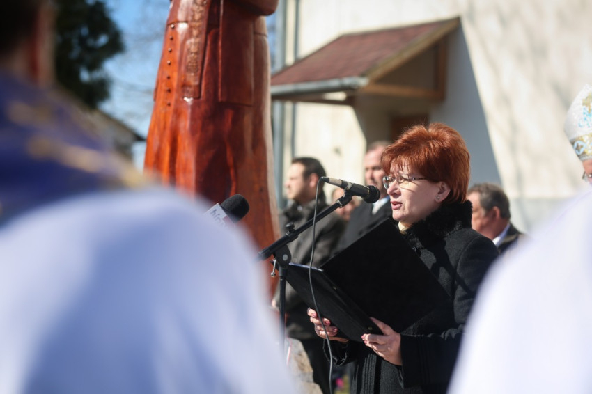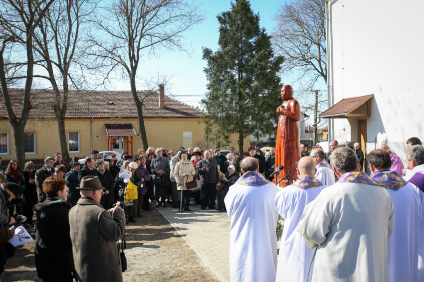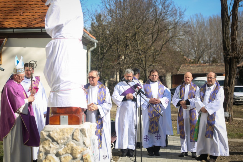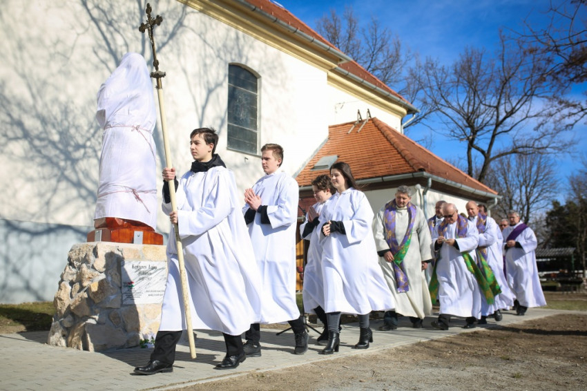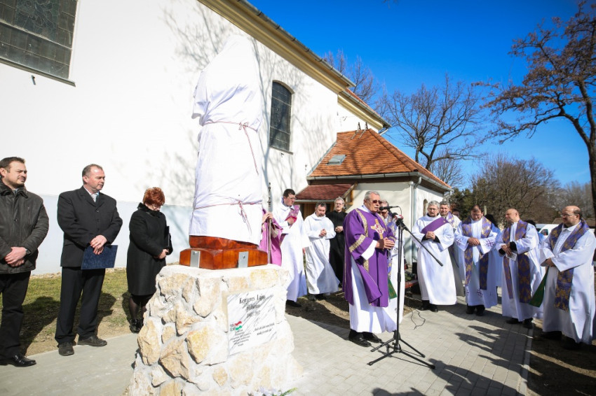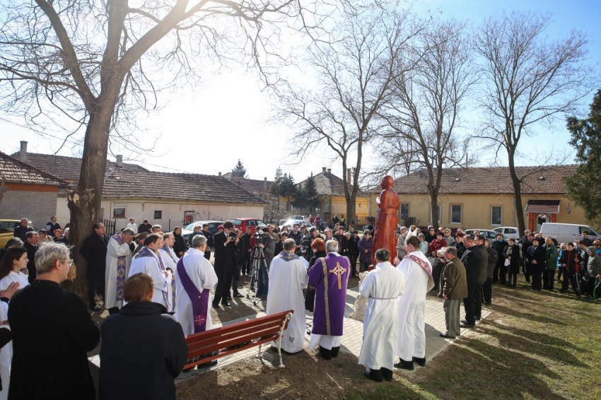 Az emlékmise végén a hívő közösség a mártír boldoggá avatásáért imádkozott, majd Retnik Ferenc tiszavárkonyi plébániavezető szavait követően Varga Lajos püspök megáldotta Harangozó Márton alkotását: Kenyeres Lajos egész alakos szobrát. A művész korábban már elkészített egy kopjafát a mártír pap emlékére, amelyet a gyilkosság helyszínén állítottak fel, Vezseny és Tiszavárkony között, a Tisza-gáton. Az alkotó a következőket véste fel az emlékoszlopra: „Meghalt hitéért gyilkos kezek által”. A kopjafa másik oldalán pedig egy evangéliumi idézet olvasható: „Boldogok, akik üldözést szenvednek az igazságért, mert övék a mennyek országa”.