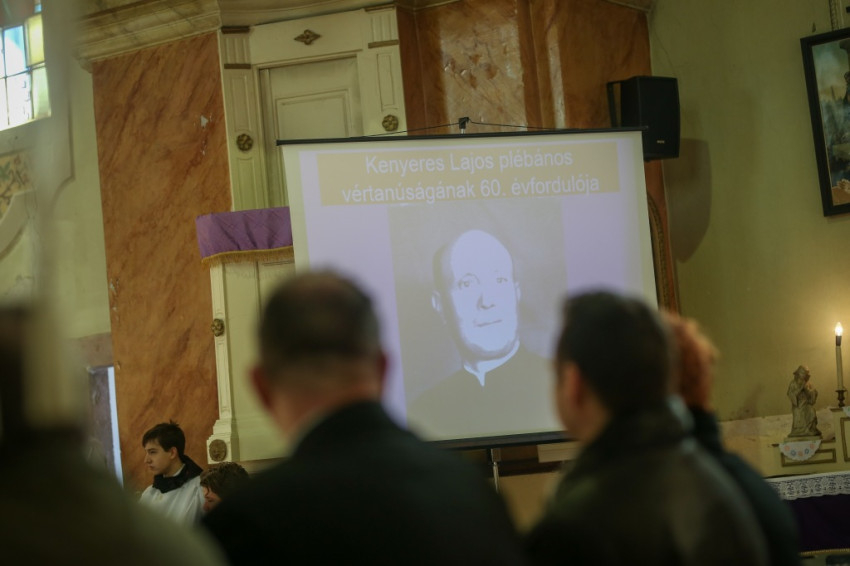 A templomban egybegyűltek Ratnik Ferenc állandó diakónus, plébániavezető és Máthé György szolnoki esperes vezetésével már a szentmise előtt énekkel, imádsággal emlékeztek az 1957. február 28-án meggyilkolt Kenyeres Lajos vértanú papra Tiszavárkonyban, ahol 1946-tól haláláig volt plébános. A rendelkezésre álló dokumentumok, a nyomozás során feltárt tények alapján számos részletében rekonstruálható a végzetes nap. Kenyeres Lajos plébános azon a délutánon hittanórát tartott a szomszédos faluban, Vezsenyben, majd elindult kerékpárján Tiszavárkonyba. Biciklijén hazavitte a gátőr gyerekeit, azután tovább haladt a Tisza-gáton. Ekkor már lesben álltak a támadók (a történtek szakértő kutatói hat-hét emberről beszélnek), akik felkészültek a brutális tettre. Egy kifeszített drótkötéllel megakasztották a kerékpárt, rárontottak a földre zuhant plébánosra, és ütni-verni kezdték. A nagytermetű, erős papot azonban nem tudták azonnal agyonverni, a Tiszához vonszolták, és egyikük tarkón lőtte. A holttestet a folyó partfalának alján elföldelték, a biciklit a vízbe hajították.