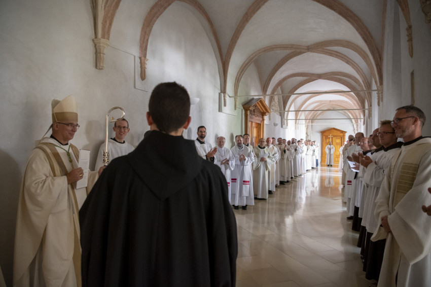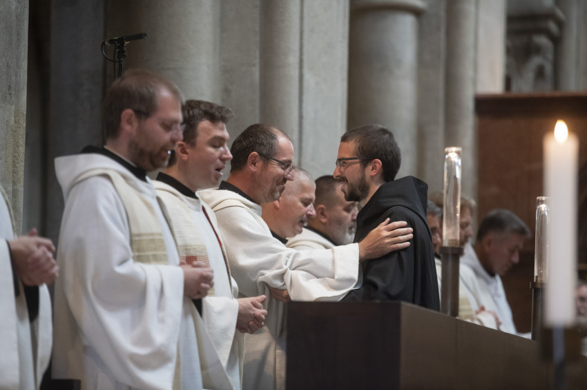 A szerzetesszentelés imádsága és a kórusruha átadása után Lőrinc testvér minden pannonhalmi örökfogadalmas szerzetessel békecsókot váltott a közösségbe való befogadás jeleként.