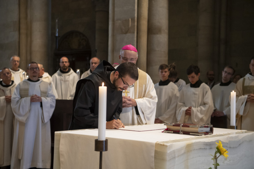 Cirill főapát homíliájában ennek a keresésnek a mozzanatait elevenítette fel Lőrinc testvér számára: „Gimnazistakorod óta itt élsz, Pannonhalmán. A jelöltidőszakban, a noviciátusban és az egyszerű fogadalmas évek során téged is kísért az Úristen megerősítő szeretetével. Te is azért juthattál el idáig, hogy most véglegesen, örökre elköteleződj közöttünk az Isten mellett, mert megtapasztaltad, hogy Isten itt tért be az életedbe; itt erősített meg újra és újra, azon a tapintatos, gyöngéd és leleményes módon, amelyre csak ő képes.”