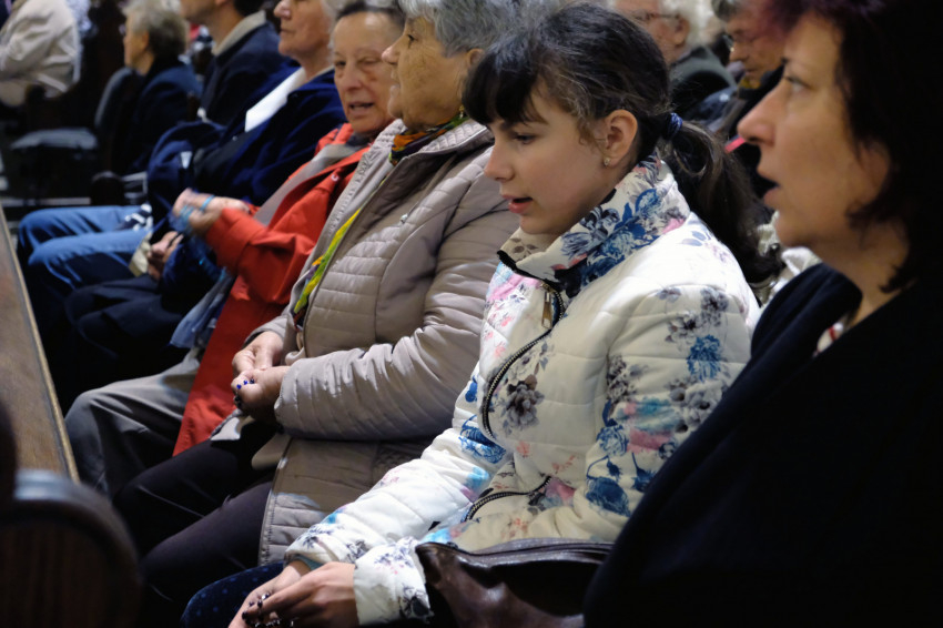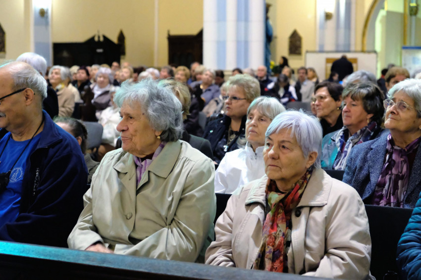 Egy úr lép a mikrofonhoz, aki gyerekként nagyon unta a rózsafüzért, de manapság, az orvosi rendelőkben, várakozás közben már nagyon meg tudja becsülni. És innovációja is van ez ügyben: a heti evangéliumot rózsafüzérmondás közben dolgozza fel, mélyíti el magában; oly módon, hogy a titkok helyett a kérdéses rész egyes mondatait mondja.