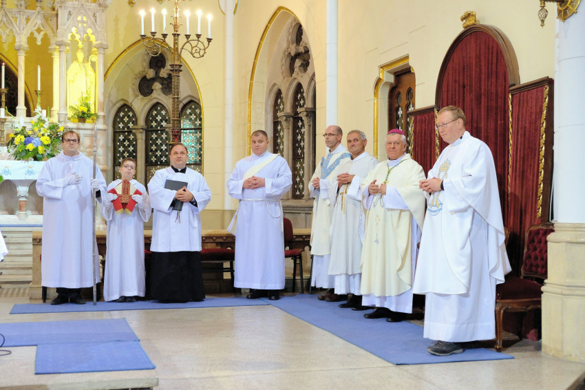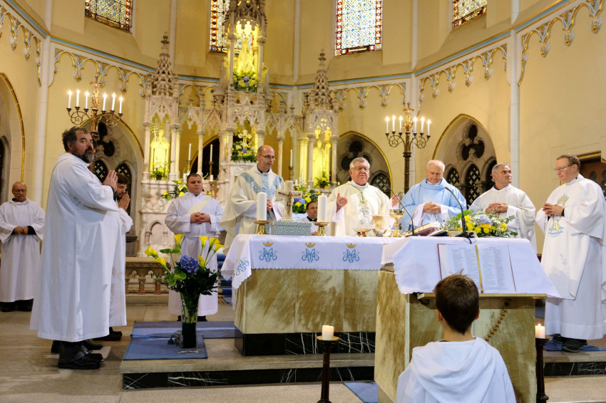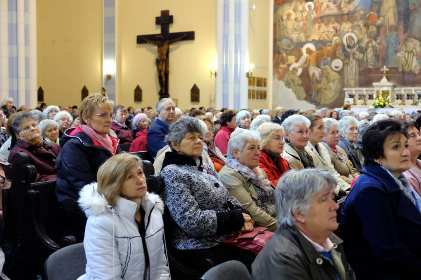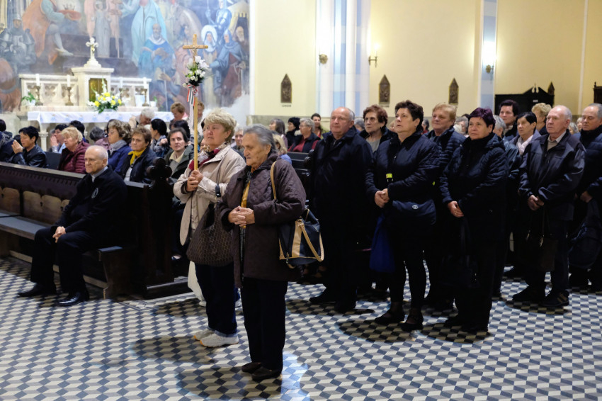 A mise kezdetén a plébános köszönti Snell György püspököt, majd felolvassa, hány felől (az egész országból, de még Kárpátaljáról, Szlovákiából és Romániából is) jöttek ma ide. Impozáns a hosszú felsorolás, és megható, hányan keltek ma útra hajnalok hajnalán, hogy a jubileumi találkozón részt vehessenek.