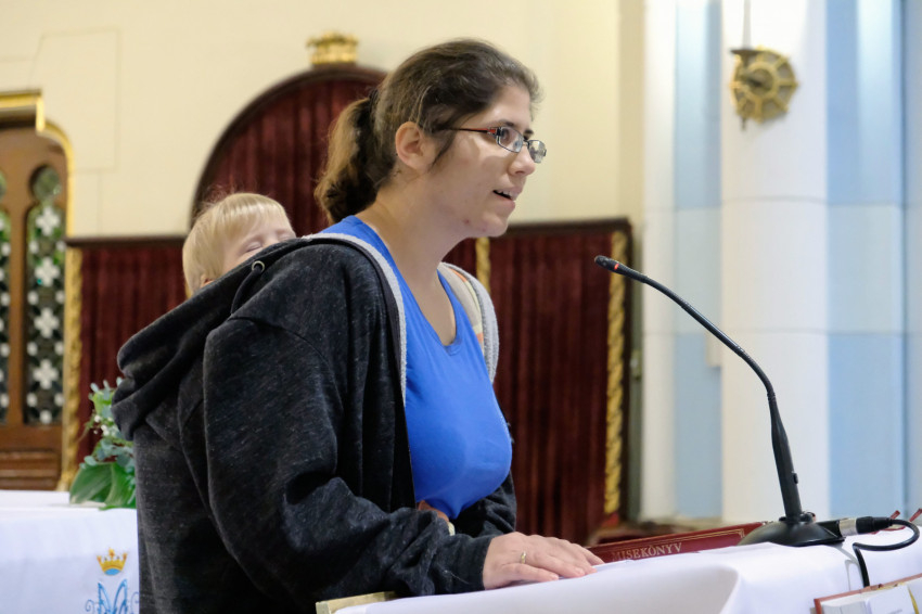A plébános egy anyukát hív a szószékhez, aki egyik gyermekével a hátán érkezik. Elmeséli, hogy zajlik náluk az altatás, már persze a mesemondás után. Korábban a telefonját nyomkodta, míg mind a négy gyerek elaludt, de aztán áttért a rózsafüzér imádkozására. Egy-két tized, és már alszanak is! És az ő lelke is könnyebb, békésebb lesz a végére.