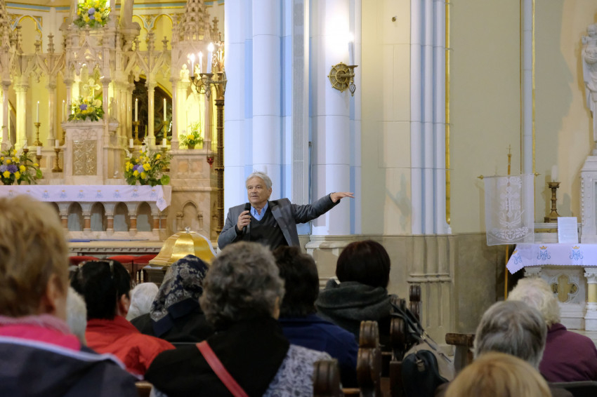 A plébános ezután bejelenti a nap előadóját, Csókay Andrást, a főorvost, az idegsebészt, a misszionáriust, aki már „visszajáró vendég” itt. Hogy miért, az rögtön kiderül, amint megkezdi az előadását: 1998. december 12-én, reggel hat és fél hét között ebben a templomban fordult meg az élete. Itt térdelt aznap hajnalban, és úgymond „hétköznapi misztikus élménye” volt. Semmi extra nem történt, ez mégis mindent megváltoztatott számára. Sokunknak vannak, lehetnek hasonló élményeink, csak nem vesszük észre őket. Jézust a lelkünk mélyén kellene keresnünk, de szívesebben vagyunk a felszínen. Ott, a mélyben nemcsak Krisztussal találkozunk, hanem életünk problémáira is választ kapunk. Andrásnak a legtöbb sebészeti újítása, a legjobb ötletei rózsafüzérmondás közben jutottak eszébe.