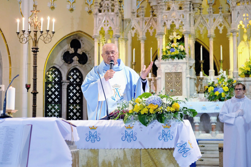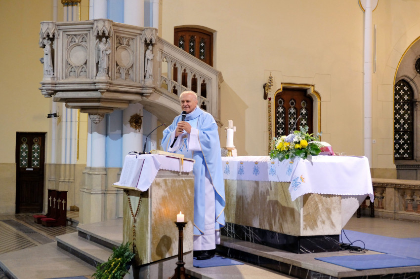 Az ember imádkozó lény, akiben mély vágy él a teremtőjével való kapcsolatra – kezdi prédikációját a püspök. A száj a szív bőségéből szól, és ha nem szól, idővel a hit is elhal. A rózsafüzér titkai a katolikus hit egyre mélyebb és mélyebb ismeretéhez segítenek hozzá. Sokak problémája, hogy a figyelmük elkalandozik a rózsafüzér mondása közben. Akárcsak annak az embernek, akinek Szalézi Szent Ferenc ajándékba ígérte a lovát, ha a Miatyánkot képes minden egyes szavára figyelve elimádkozni. Ám az illető még a második mondatnál sem tartott, és máris azt kérdezte Ferenctől, hogy a lóval együtt a szerszámokat is megkapja-e… Ilyenek vagyunk, de ez ne szegje a kedvünket – buzdít Snell György. Lehet, hogy még el is alszunk ima közben, de ő mindig azzal szokta az erre panaszkodókat vigasztalni, hogy csak az alszik el ima közben, aki imádkozik.