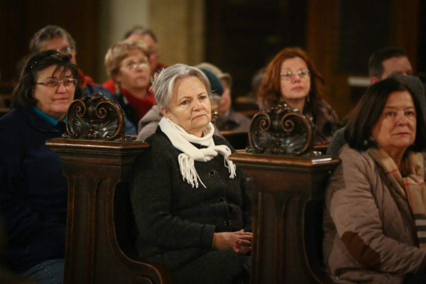 A személyes történetekkel átszőtt előadás után a szerzetes imalapokat osztott szét, amelyek a különböző rózsafüzérek imádkozásához is útmutatást adnak.