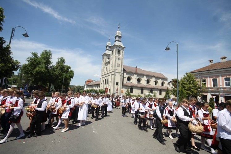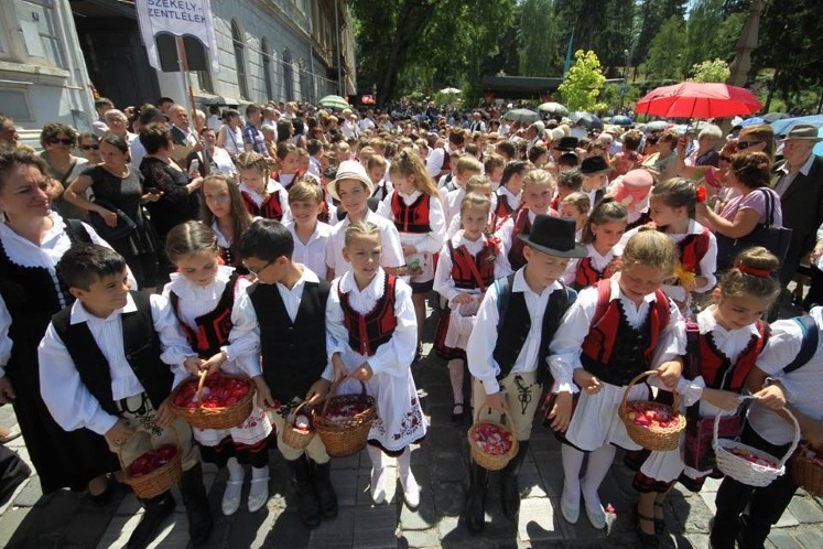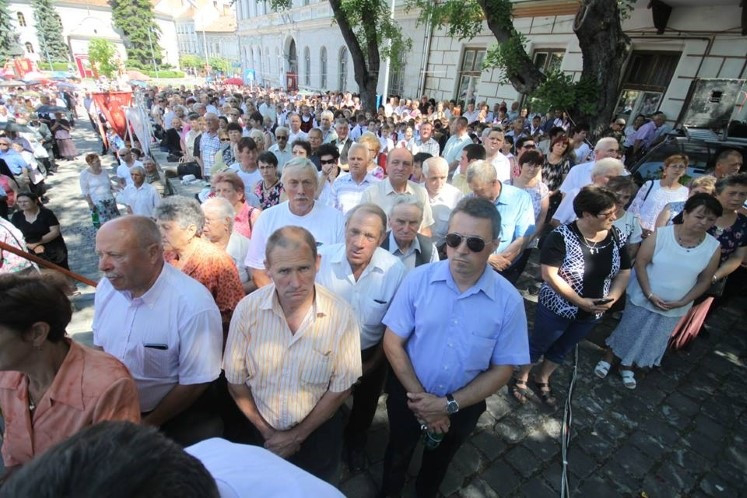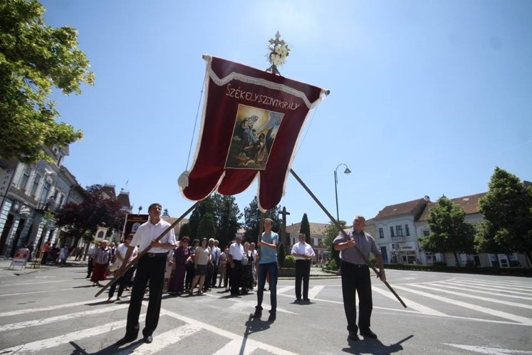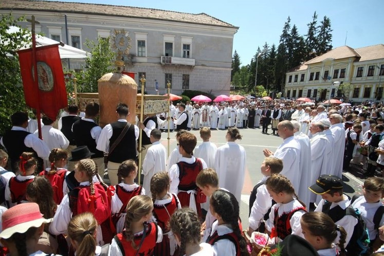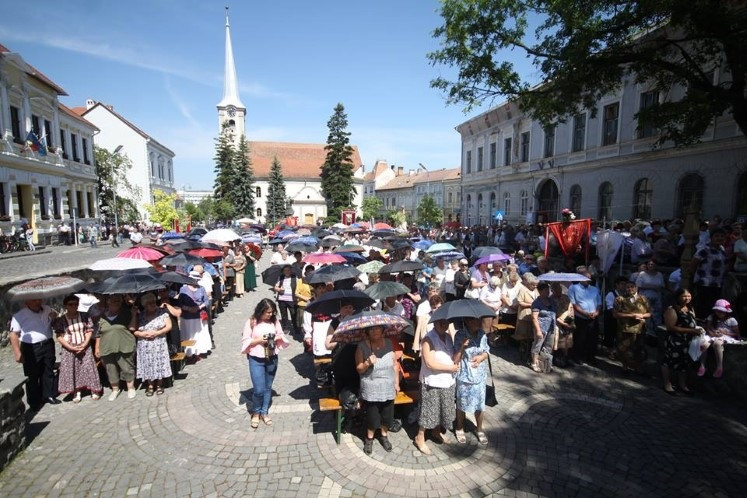 A közeli települések és a város plébániáinak búcsújárói keresztaljával érkeztek Székelyudvarhelyre, a Márton Áron térre. Az ünnepi szentmise szónoka Székely Dénes gyulafehérvári teológiai tanár volt. Beszéde elején az Úrnapja, vagyis Jézus teste és vére ünnepének történetét ismertette, kitérve az ószövetségi előképekre is.