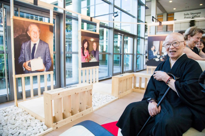 Reggel, a kapunyitás után nem sokkal vallásközi imára került sor, a Shōdō Habukawa buddhista szerzetes és Don Guissani, az olaszországi találkozót szervező Comunione e Liberazione mozgalom alapítója barátságát bemutató kiállítás területén. A közös – mintegy fél órás – imádságon négy vallás követői vettek részt: katolikus, zsidó, muszlim és buddhista hívők, akik egy-egy imát mondtak saját nyelvükön.