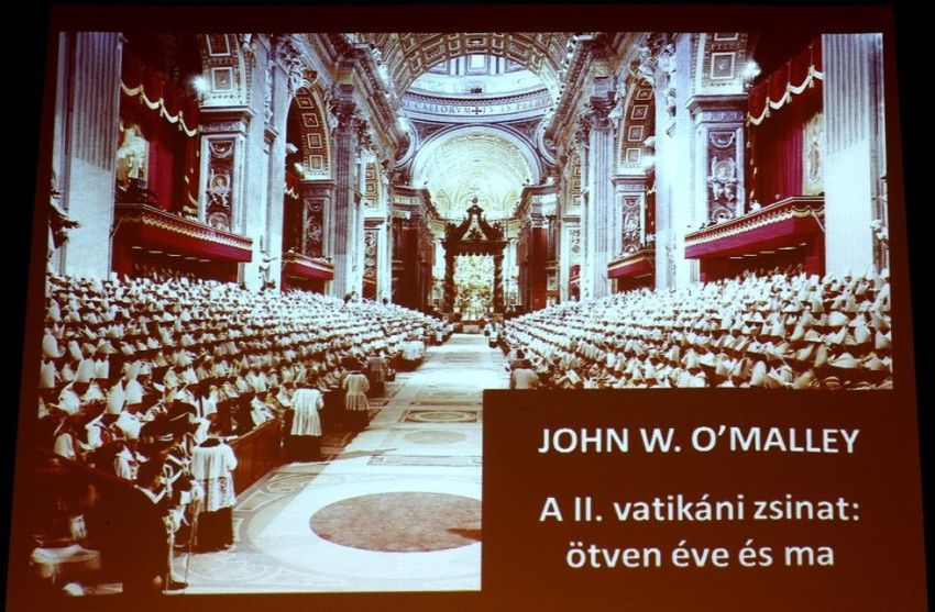 Az est következő részében John W. O’Malley tartott előadást, melynek elején arról mesélt, hogy épp Rómában tanult a II. vatikáni zsinat idején, szállása közelében zajlott a zsinat. Viterbói Egidiusszal foglalkozott éppen, és fölmerült benne a kérdés: vajon mi a kapcsolat a trentói (tridenti) zsinat és az éppen zajló zsinat között? Ám akkor még nem sejtette, milyen sokat fog majd később a II. Vatikánummal foglalkozni. Sok évvel később úgy érezte, senki nem írta meg, valójában mi is történt a II. vatikáni zsinaton – így született ez a kötet, melynek alapelve, hogy a zsinat előtti és a zsinat utáni összefüggésekre is szükség van; melyben bemutatja, mennyiben és miben különbözik a korábbi zsinatoktól (nem csak a létszámban, bár abban is: míg a trentói zsinaton harminc körüli volt a résztvevők száma, a II. vatikáni zsinaton kétezer körül).