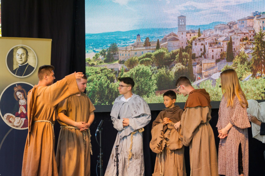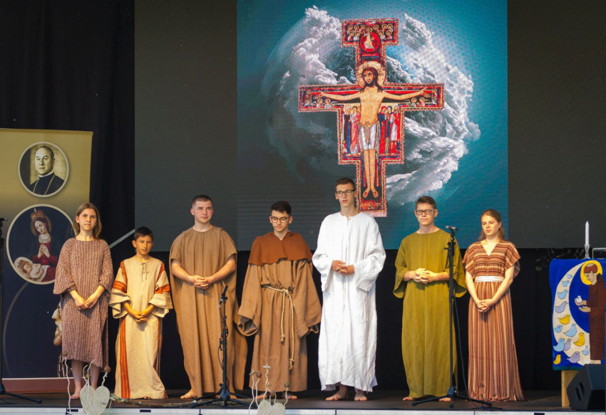 Az első előadás Assisi Szent Ferenc életéről szól, és a nagyszalontai Szent Antal gyermekvédelmi központ lakói adják elő. Jól átjön belőle a ferenci radikalitás: az, hogy az alapító mennyire fontosnak tartotta a kétkezi munkát, a szegények világához közeli életet. Az ember annyi, amennyit Isten szemében ér, ezért nem kell törődnie azzal, hogy a világ elismeri-e, hangzik el, és új meg új példáit látjuk annak, hogy ha valaki egészen komolyan veszi az evangéliumot, mennyire nehéz utat választ.