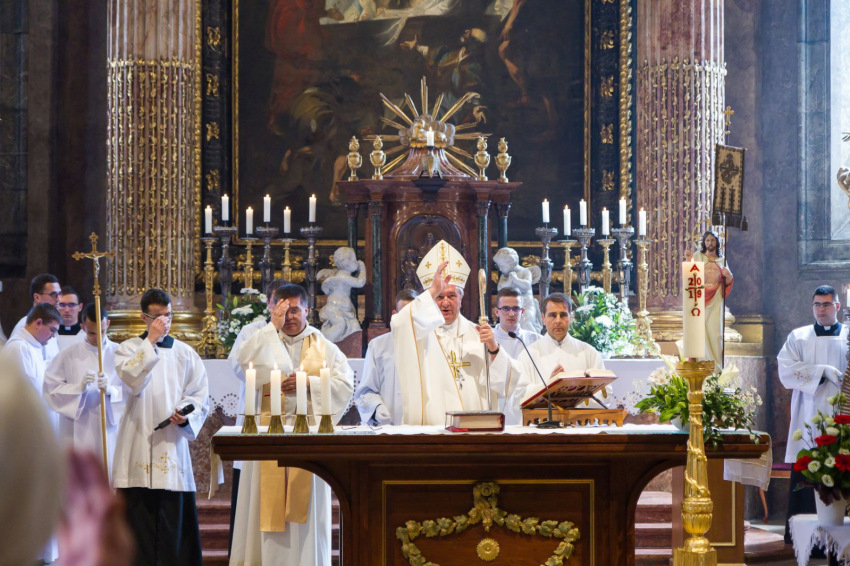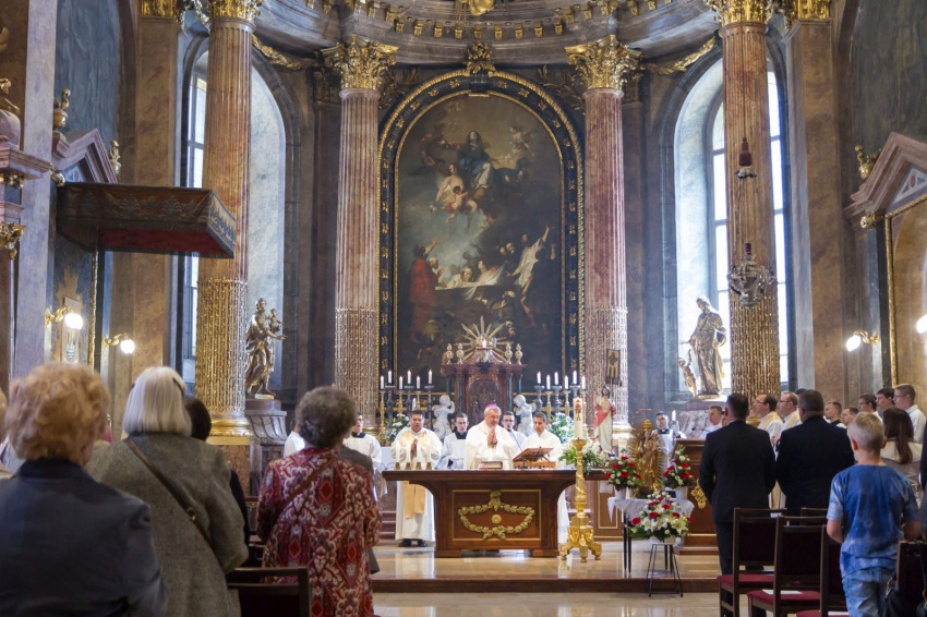 Tavaly is engem küldtek erre az eseményre, ezért már nagy biztonsággal indulok a pályaudvarról a püspökvárbeli székesegyházba. A hirtelen jött szép időben a kora délelőtti időpont ellenére máris sok turistát látni, a templom előtt is álldogál egy csoport. Csalódottak lehetnek, mert valamivel beljebb őrt áll egy úr, és engem is csak az Új Emberre és a Magyar Kurírra való hivatkozás után enged tovább.