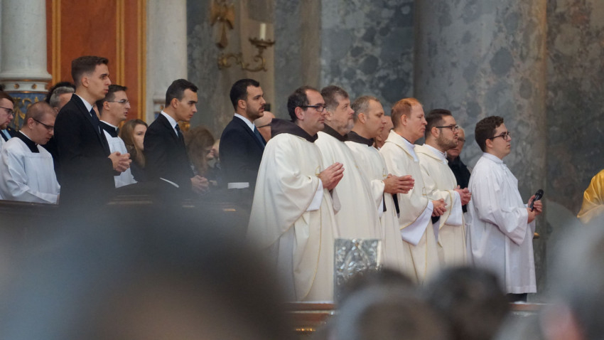 Minden másodéves növendék számára nagy pillanat az, amikor végre felöltheti a papok ruháját, a reverendát. Egy külső szemlélő talán csak annyit vesz észre ebből, hogy eddig „normális” ruhákban jártunk, ezt követően pedig hosszú feketében járunk. Ez azonban jóval több ennél. Erről tanúskodik – a visszajelzések alapján – a boldogság az arcunkon és a megilletődöttséggel való küszködés a mise bizonyos pontjain. Valami történt itt, határozottan betöltötte a Szentlélek ezt az ünnepet. Kevésbé hívő testvéreink számára meg lehetett mutatni valamit abból a testvéri és összetartó krisztusi közösségből, ami az Egyházat jelenti.