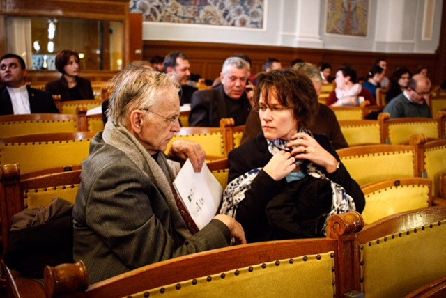 Ugyanakkor a német kontextusban is tudjuk – mondta a linzi egyetem rektorhelyettese –, hogy nagyon érdeklődtek a posztkommunista egyházak valósága iránt. Segítettek a könyveiket átcsempészni, „erről különböző sztorikat lehet hallani, és egy olyan szép együttélés volt, és most egyszerűen ebben a kettős létben (…)