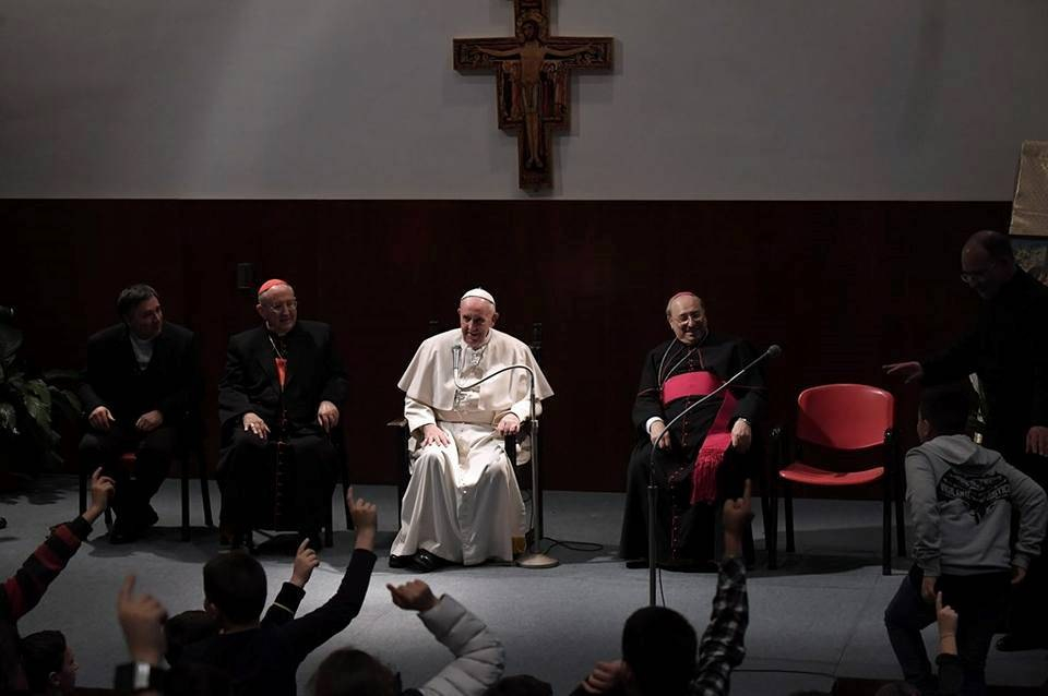 A beszélgetés végén rövid tanítást adott a gyerekeknek a Szentháromságról. „Isten egy vagy három?” – kérdezte tőlük. A válaszok után így szólt: „Ha egy, akkor az Atya az Isten? Vagy a Fiú? Vagy a Szentlélek? Hárman vannak… nem könnyű ezt megérteni. Három személy van, de ez a három alkotja az egyetlen Istent, rendben?”