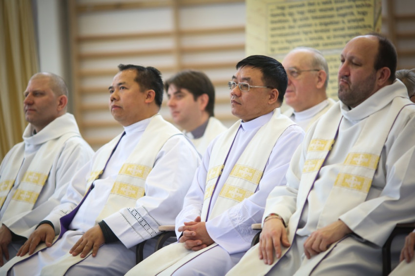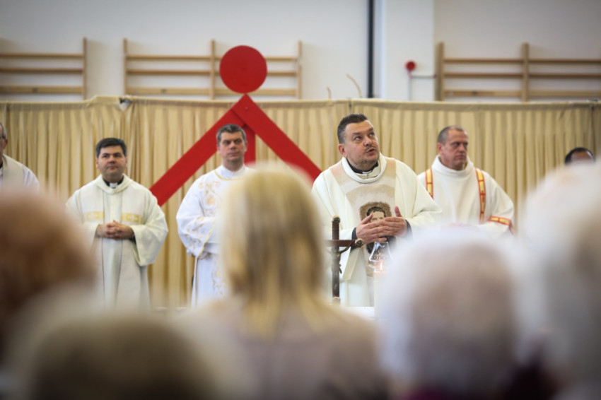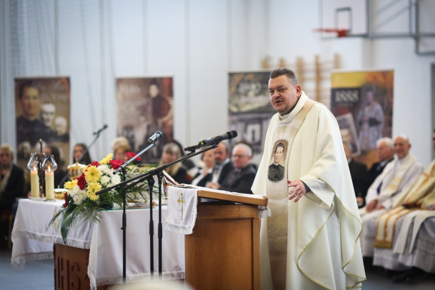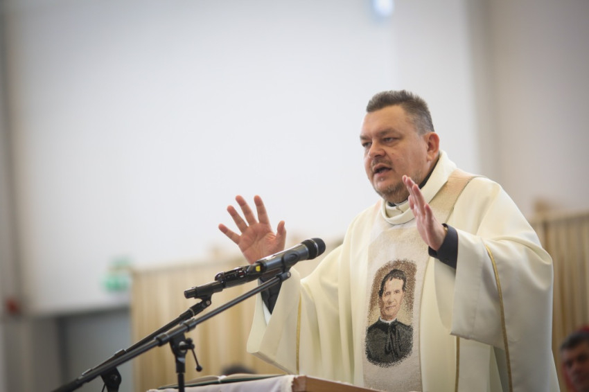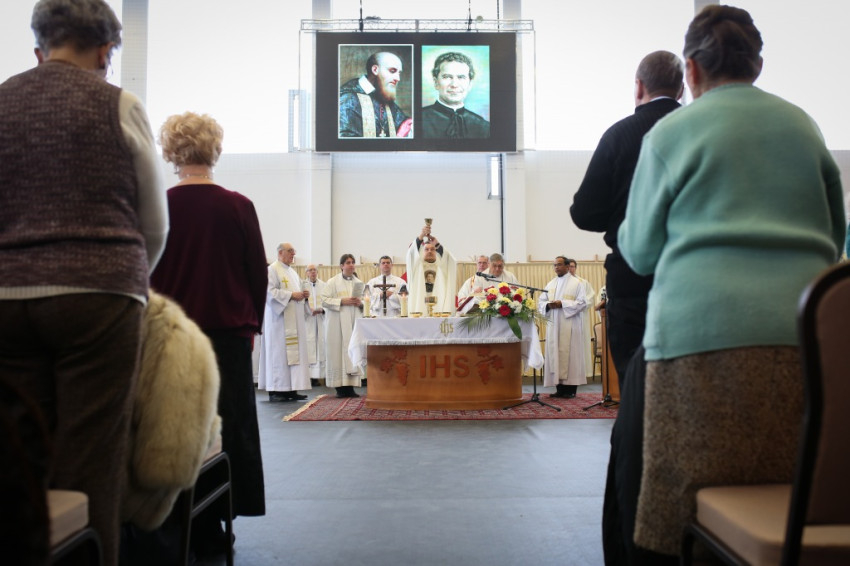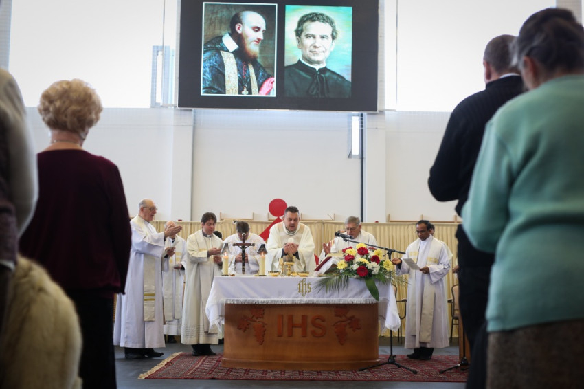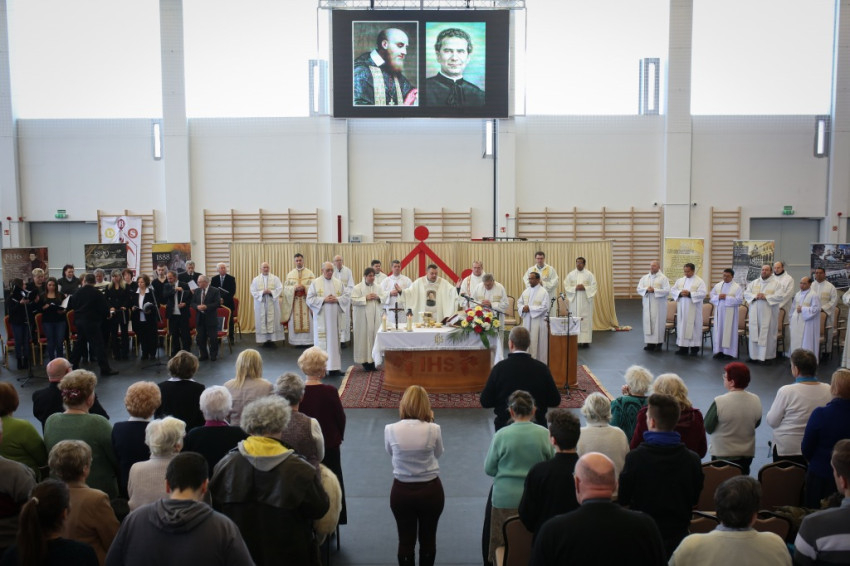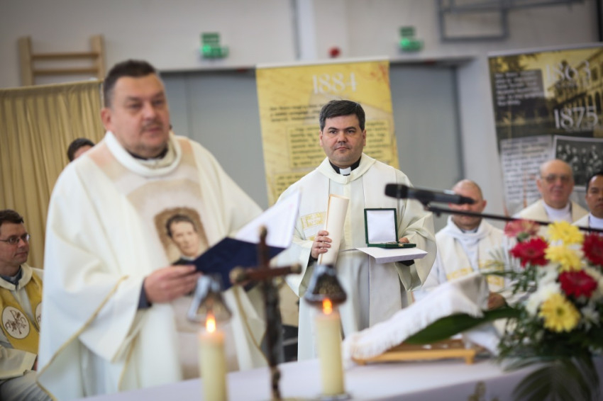 Az ünnep szentmisével kezdődik. Ábrahám Béla tartományfőnök először a múlt szeptemberben átadott tornacsarnokért mond hálát, és minden segítséget megköszön. Kezdetben csak tornatermet szerettek volna, de aztán Demeter Zoltán református lelkész, országgyűlési képviselő biztatására – aki Don Bosco-díjban részesült az ünnep alkalmából – mertek merészebbet álmodni – mondja el a tartományfőnök. „Igyekszünk ezt a nagy lehetőséget minél jobban felhasználni a fiatalok életminőségének javítására” – folytatja a prédikációban, majd a szalézi rend elnevezéséről, Don Bosco és Szalézi Szent Ferenc kapcsolatáról beszél. Arról az eszményről, amely a Ferenc lelki iskolájába járó Don Boscónak annyira fontos volt, hogy annak jelzésére szalézinak nevezte el az általa alapított rendet. Miben áll ez az eszmény? – teszi fel a kérdést Ábrahám Béla. Jámborságnak, szelídségnek nevezzük; akkor is, ha ezt manapság sokan a mafla, gyenge szinonimájának tartják. Mert úgy gondoljuk, hogy érdemes a jóság kockázatát vállalni, a jóság erejében bízni. Pedagógia terén ez azt jelenti, hogy nem hiszünk a „jóvá pofozás” módszerében, az erőszakos, „akkor is megkeresztellek, ha nem akarod” keresztény mentalitásban. Emögött határozott istenkép van. Hiszünk abban, hogy Isten mindenkit üdvözíteni akar, hogy minden élethelyzet, életállapot és életkor megszentelhető. Ez azzal is együtt jár, hogy nagyon pozitívan tekintünk az emberre, az egymás iránti bizalomra szavazunk, és mindenkit erre biztatunk. Szalézi Szent Ferenc nyomán nagyon hiszünk az ember természetes és természetfeletti képességeiben, noha ismerjük a gyengeségeit is. Egyáltalán nem mindegy ugyanis, melyikkel kezdjük, melyikre helyezzük a hangsúlyt! Mi arra koncentrálunk, hogy észrevegyük magunkban és egymásban a jót, és azért imádkozunk, hogy Isten teljessé tegye bennünk, amit megkezdett.