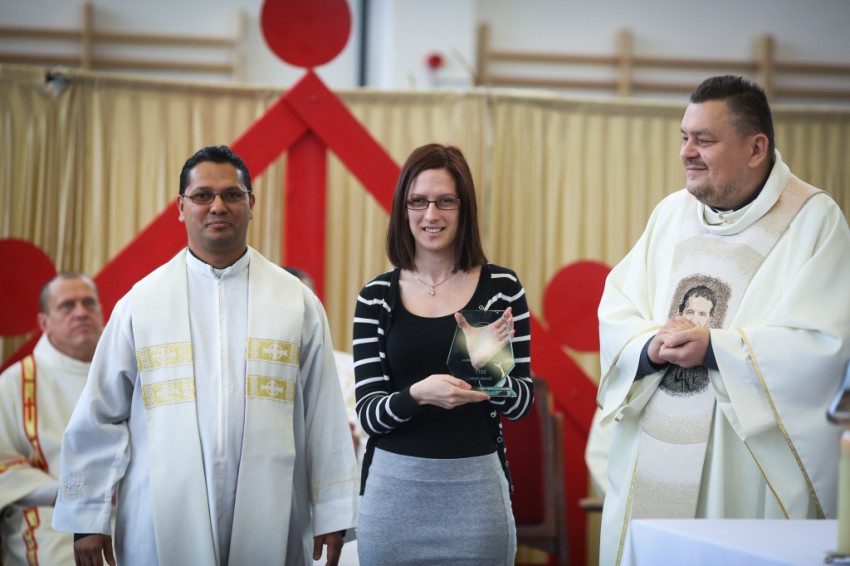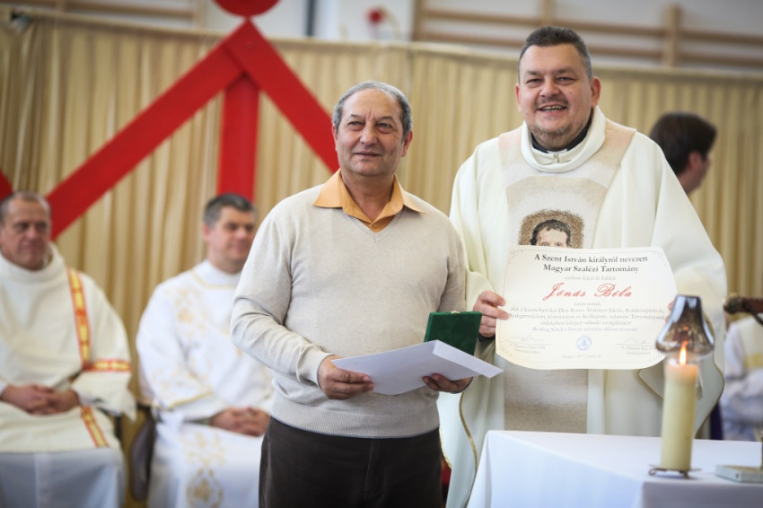 A következő percekben Demeter Zoltán, Mihaleczku Józsefné Etelka és Barna István, az Avilai Szent Teréz-plébánia munkatársai, Demeter Zoltán Don Bosco-, Jónás Béla, a Don Bosco Iskola tanára pedagógiai, valamint Domán Vivien szalézi animátor pedig Savio Domonkos-díjat vesz át.