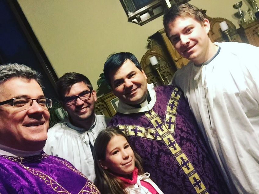 Rorate-szelfi az angyalföldi Szent Mihály-templomban, ahol Flavio atya hétről-hétre kisegít